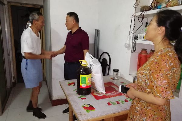 在社區(qū)工作人員陪同下,何族興來到社區(qū)獨(dú)居老黨員田國英家走訪慰問,與老人親切交談,關(guān)切詢問他的身體和生活狀況,查看他家燃?xì)庠O(shè)施安全狀況,并叮囑他高溫季節(jié)注意防暑,有困難及時(shí)聯(lián)系。隨后,何族興一行還來到全國最美家庭倪明華家,詢問家中生活近況,并送上糧油等生活慰問品。