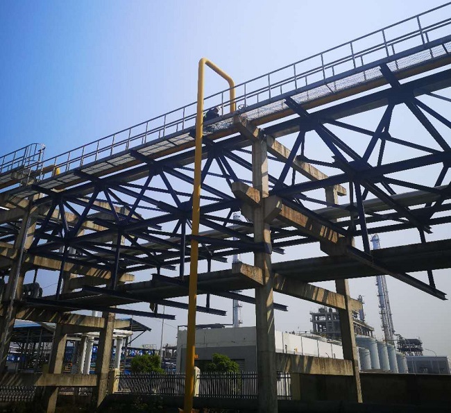 霞虹路管廊位于安慶高新技術(shù)產(chǎn)業(yè)開發(fā)區(qū)內(nèi),為億城化工、國孚等園區(qū)內(nèi)重要工業(yè)用戶提供燃?xì)?,日均輸配天然?萬余立方。為保障這些企業(yè)的正常生產(chǎn)經(jīng)營,管網(wǎng)維護人員克服高空作業(yè)的諸多不便,規(guī)范穿戴安全繩和防護用具,在離地最高達11米的管廊上,一寸一寸地對全長3公里的管廊主體及附屬閥門、焊縫等各個關(guān)鍵點進行了無死角的檢查勘測、查漏。