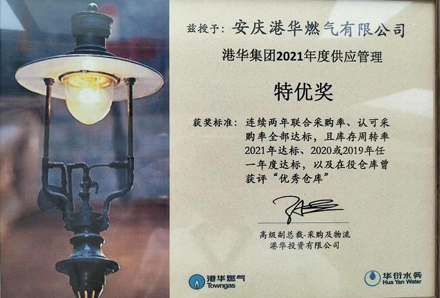 安慶港華喜獲港華集團2021年度“供應管理特優(yōu)獎”