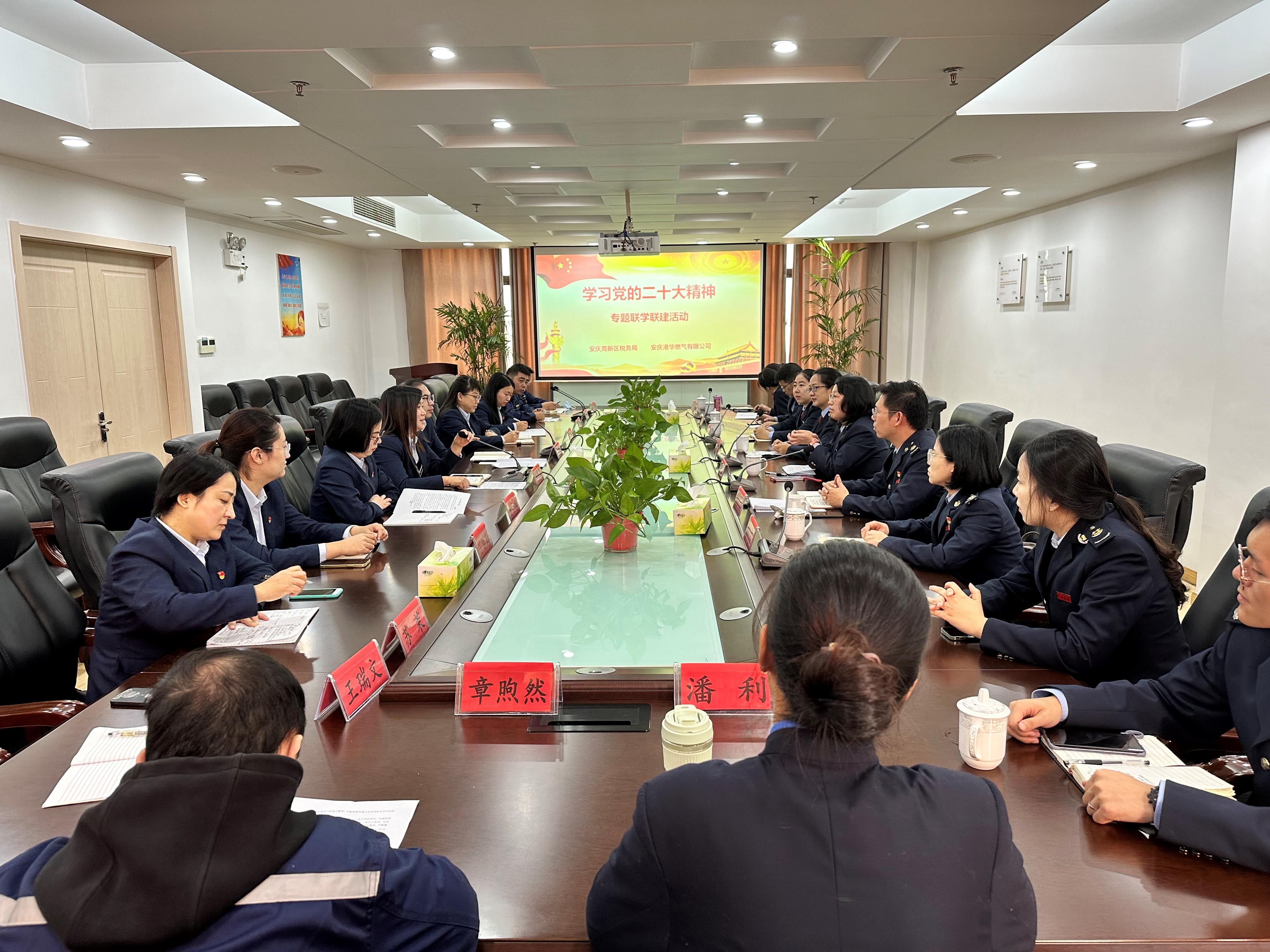 為深入學(xué)習(xí)貫徹黨的二十大精神, 11月4日上午,安慶高新區(qū)稅務(wù)局與安慶港華共同開展“學(xué)習(xí)黨的二十大精神”專題聯(lián)學(xué)聯(lián)建活動,高新區(qū)稅務(wù)局紀(jì)檢組組長夏明楨, 安慶港華黨委委員、董事會秘書江晨昊,財務(wù)總監(jiān)陳莉莉及雙方青年職工代表參加活動。
